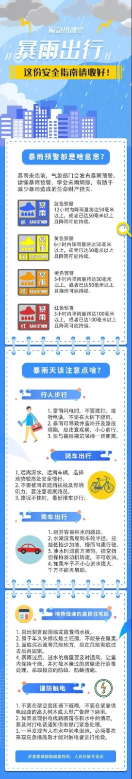 來(lái)源: 本站 發(fā)布時(shí)間: 2021-07-13近日,多地遭遇入汛以來(lái)最強(qiáng)降雨,中央氣象臺(tái)發(fā)布今年首個(gè)暴雨橙色預(yù)警,國(guó)家防總啟動(dòng)防汛Ⅳ級(jí)應(yīng)急響應(yīng)。暴雨天出門防范有講究,這份暴雨天出行安全指南請(qǐng)收好。來(lái)源: "央視新聞"公號(hào)、@應(yīng)急管理部 、映象網(wǎng)