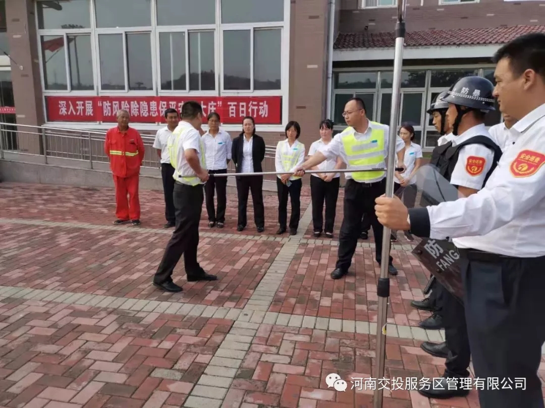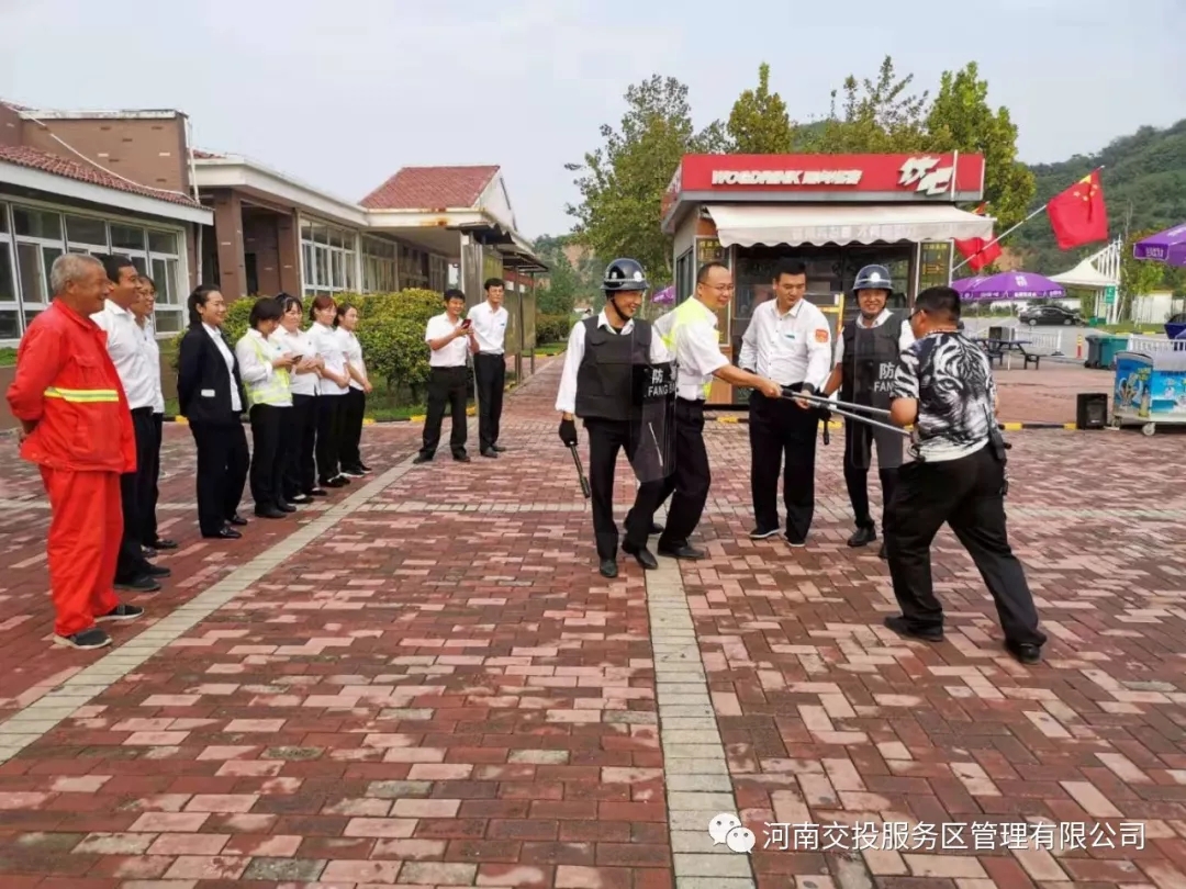 9月18日,鞏義服務(wù)區(qū)在北區(qū)廣場(chǎng)開展“反恐防暴”演練。演練模擬了歹徒?jīng)_擊服務(wù)區(qū),服務(wù)區(qū)立刻啟動(dòng)應(yīng)急預(yù)案,疏散人群,保安迅速用防暴鋼叉、盾牌、防刺手套等防暴裝備制服了歹徒。演練前后,服務(wù)區(qū)組織人員集中講解了應(yīng)急預(yù)案的詳細(xì)措施,防暴裝備的使用方法及實(shí)戰(zhàn)技巧。 通過(guò)此次演練,加強(qiáng)了服務(wù)區(qū)員工自我保護(hù)意識(shí)及自救互救的能力,同時(shí)增強(qiáng)了憂患意識(shí),時(shí)刻緊繃反恐防范這根弦,為建國(guó)70周年?duì)I造安全穩(wěn)定高速公路環(huán)境。
