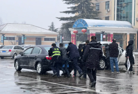 1月21日,洛陽服務(wù)區(qū)在除雪保通工作中幫助司乘推車 張鈺 攝