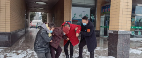 1月22日上午,三門峽服務(wù)區(qū)黨員志愿者幫扶老人下臺(tái)階 盧睿 攝