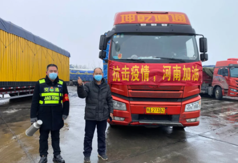 1月24日,京港澳高速長葛段出現(xiàn)交通事故,造成車輛嚴(yán)重?fù)矶拢S昌服務(wù)區(qū)為滯留車輛提供免費(fèi)開水等溫情服務(wù) 李芷芷 攝