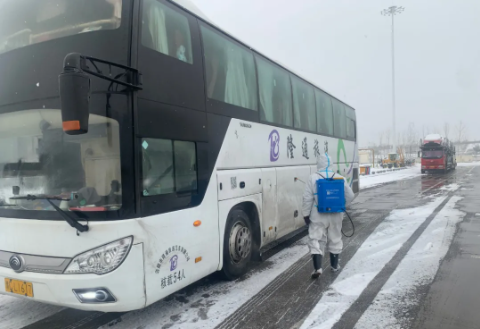 1月24日上午,一輛滿載的大巴車停留在黃帝宮服務(wù)區(qū),工作人員對(duì)車輛相關(guān)信息進(jìn)行登記,同時(shí)對(duì)車輛周邊及車門處進(jìn)行消殺。為減少人員大面積