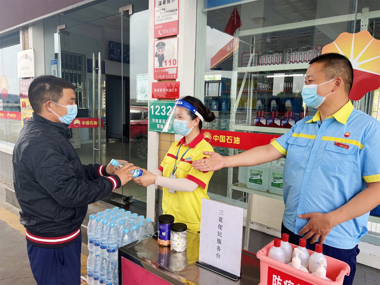三門峽服務(wù)區(qū)加油站設(shè)置“三夏”便民服務(wù)臺?;莘?攝