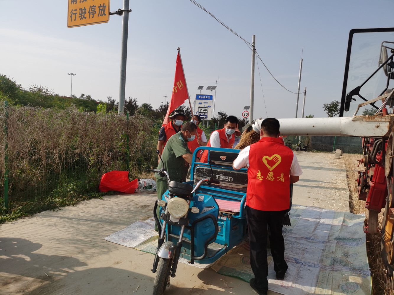 羅山服務(wù)區(qū)組織志愿活動,幫助老鄉(xiāng)搶收小麥。張翔斐 攝