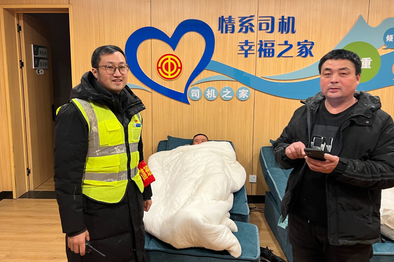 司乘對(duì)停車區(qū)的熱情服務(wù)連連感謝,激動(dòng)地說道:“特別感謝能在這寒冷的深夜為我們提供房間,讓我們能有個(gè)臨時(shí)的家,謝謝你們!”
