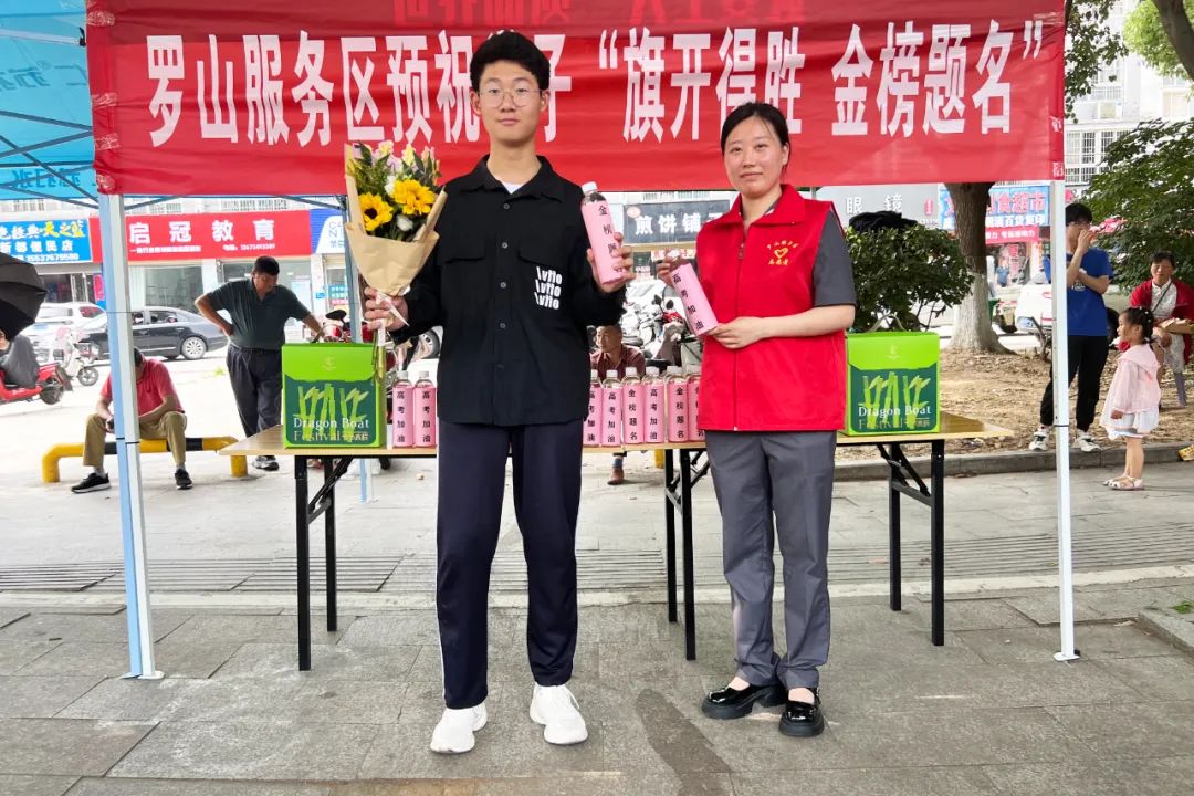 6月8日,羅山服務(wù)區(qū)為高考考生免費發(fā)放礦泉水,協(xié)助交警維護秩序