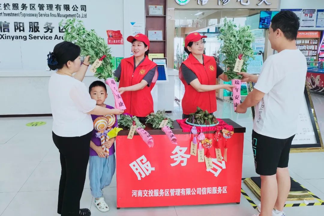 6月8日,信陽服務(wù)區(qū)開展為司乘送粽子、送艾草、送香包活動