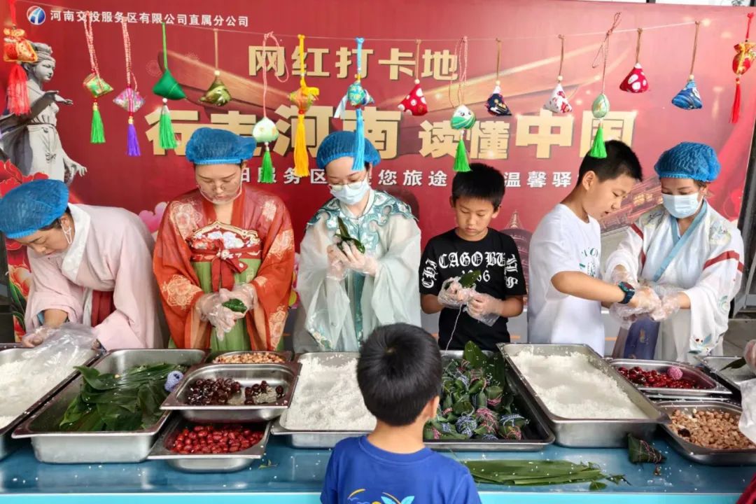 6月9日,洛陽服務(wù)區(qū)開展“弘揚端午文化,傳我濃情粽香”活動,邀請司乘一起包粽子、縫香包,傳承傳統(tǒng)節(jié)日習(xí)俗