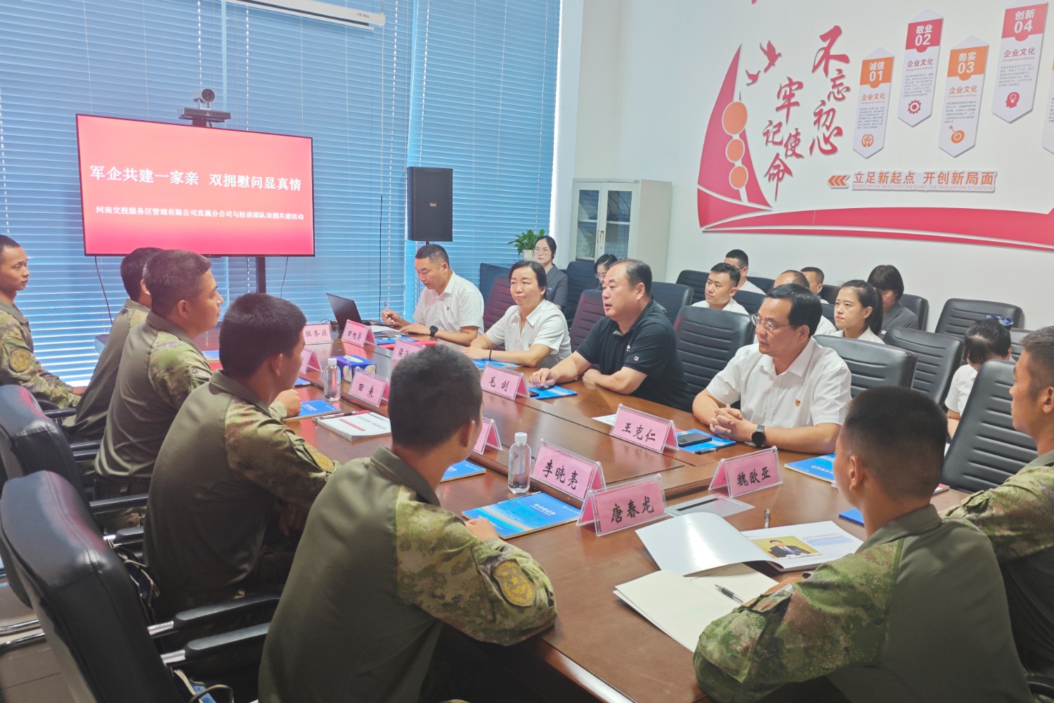 直屬分公司:與解放軍某駐訓(xùn)連隊支部在邢集駐訓(xùn)基地開展“軍企共建一家親 雙擁慰問顯真情”黨建共建活動,向長期奮戰(zhàn)在一線的部隊官兵們致以節(jié)日祝福和誠摯問候并送上礦泉水等慰問品。雙方代表分別作微黨課和個人成長故事分享、互贈黨員教育光盤、書籍等,駐訓(xùn)連隊參觀了服務(wù)區(qū)黨員示范商戶、黨員責(zé)任區(qū)、6S標(biāo)準(zhǔn)化廚房等區(qū)域,聽取了信陽服務(wù)區(qū)黨支部創(chuàng)建先進工作經(jīng)驗和優(yōu)秀做法。隨后,召開座談會,圍繞軍企雙擁共建與駐訓(xùn)連隊支部官兵進行深入交流,直屬分公司表示將繼續(xù)發(fā)揚擁軍優(yōu)屬的優(yōu)良傳統(tǒng),為官兵辦實事、解難題,不斷深化軍企軍民團結(jié)情誼,促進軍企共建工作邁上新臺階。