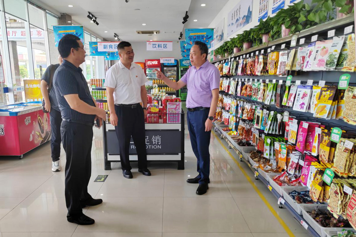 王宜偉書記一行現(xiàn)場查看了服務(wù)區(qū)公共場區(qū)、餐廳、便利店、客房、經(jīng)營檔口等區(qū)域,詳細了解了經(jīng)營管理、安全生產(chǎn)、環(huán)境衛(wèi)生、服務(wù)保障等工作開展情況,對服務(wù)區(qū)各項工作給予肯定。