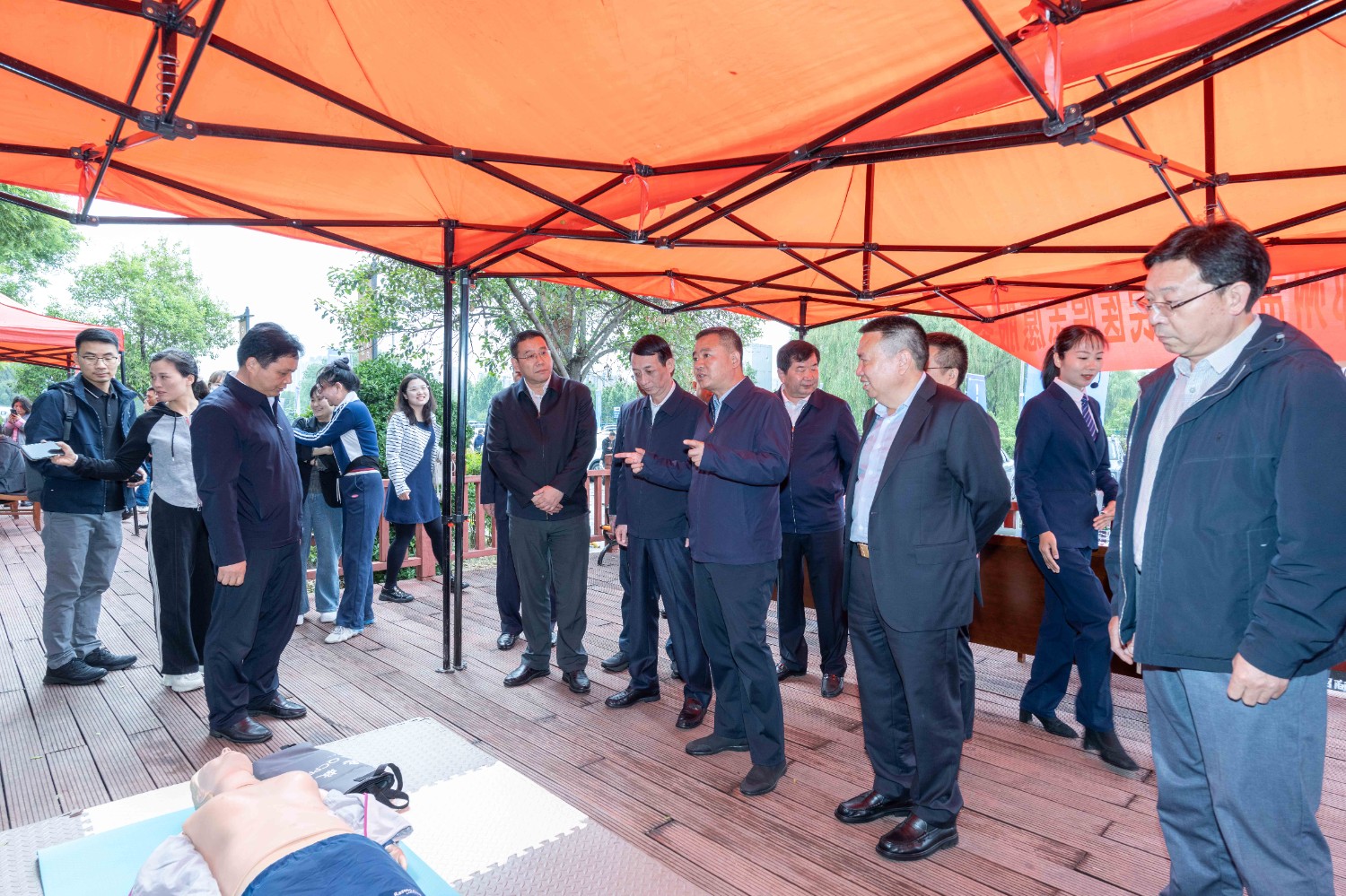 省衛(wèi)健委副主任周勇、交投集團(tuán)副總經(jīng)理代建偉代表合作雙方簽署《共建“健康河南·安心高速”志愿服務(wù)健康驛站戰(zhàn)略合作協(xié)議》,與會領(lǐng)導(dǎo)共同啟動“健康河南·安心高速”志愿服務(wù)健康驛站。隨后一同參觀了志愿服務(wù)健康驛站健康教育區(qū)、健康監(jiān)測區(qū)、應(yīng)急服務(wù)區(qū)、擴(kuò)展服務(wù)區(qū)四塊區(qū)域,詳細(xì)了解了健康驛站中AED除顫儀、急救包、急救用品等醫(yī)療配置,同時參觀指導(dǎo)了健康宣教義診、應(yīng)急搶救技能培訓(xùn)區(qū)。