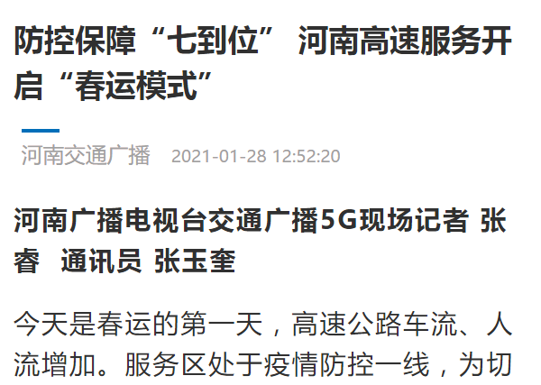 人民日報、河南交通廣播:新春走基層,春運一線 進入高速公路服務區(qū),你需要這樣做!