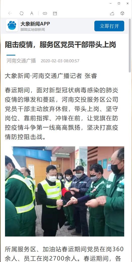 河南交通廣播:阻擊疫情,服務(wù)區(qū)黨員干部帶頭上崗