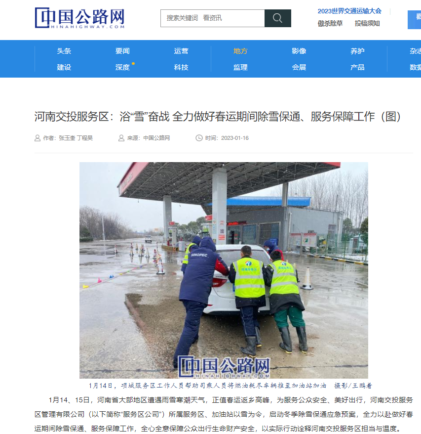 中國(guó)公路網(wǎng):河南交投服務(wù)區(qū)浴“雪”奮戰(zhàn) 全力做好春運(yùn)期間除雪保通、服務(wù)保障工作