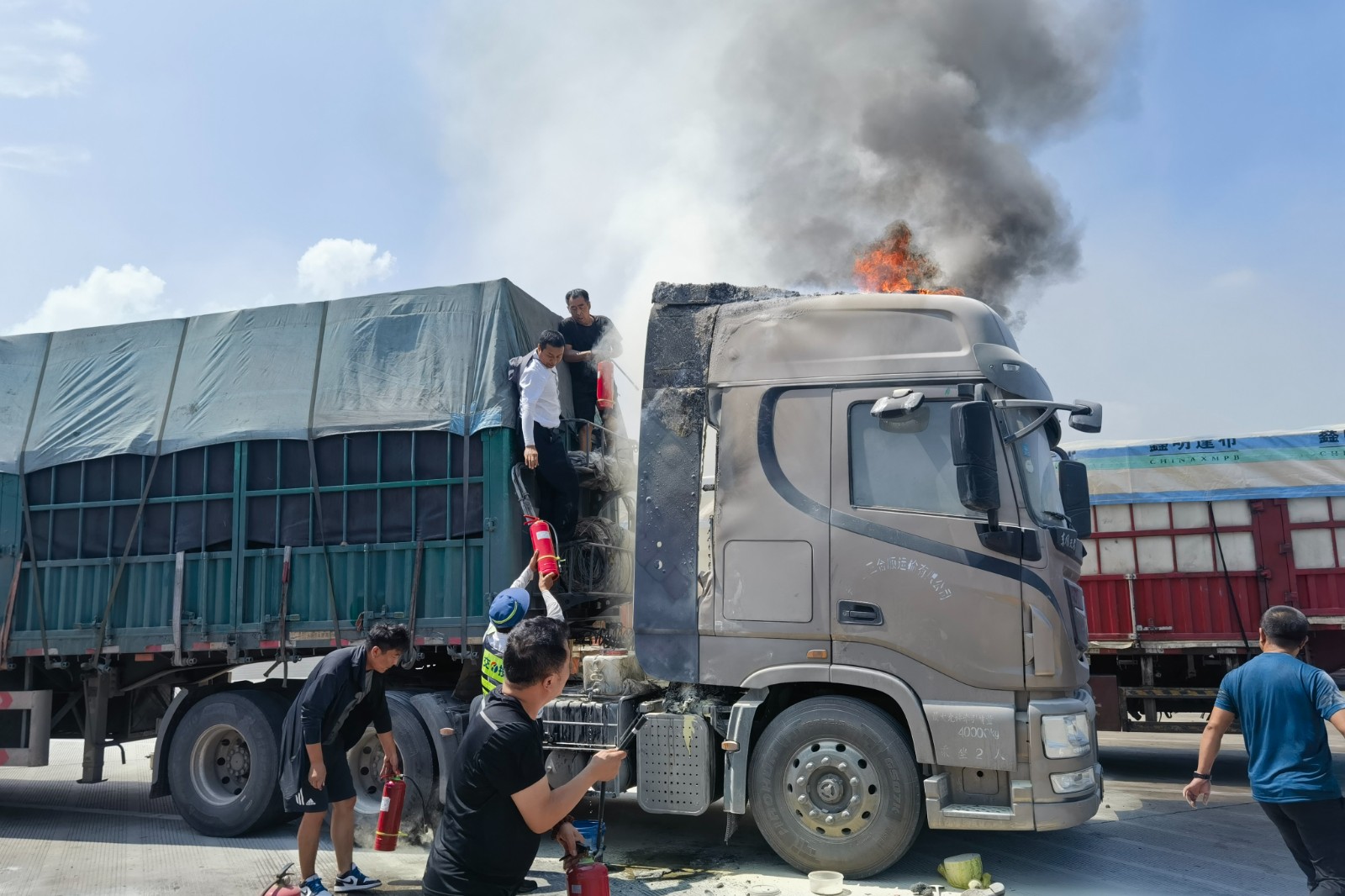 貨車自燃!中牟服務(wù)區(qū)妥善處置顯擔當