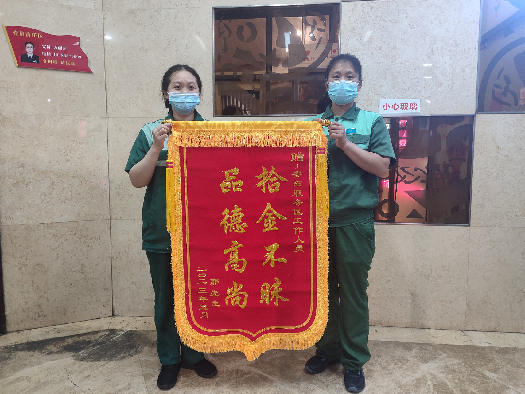 2023-05-30 作者:5月30日,安陽(yáng)服務(wù)區(qū)收到一件來(lái)自河北的郭先生郵寄了一面寫(xiě)有“拾金不昧 品德高尚”的錦旗。事情要從5月23日說(shuō)起,當(dāng)天保潔員宋保榮在衛(wèi)生間打掃衛(wèi)生時(shí)撿到一個(gè)女士手提包,第一時(shí)間上交至辦公室,經(jīng)共同查看,包內(nèi)有現(xiàn)金千余元、手機(jī)一部及個(gè)人物品若干。服務(wù)區(qū)通過(guò)多方努力與…