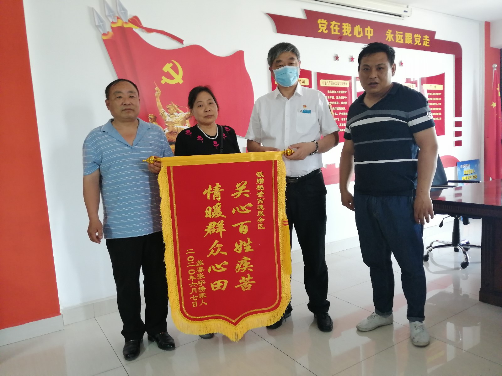 2020-06-07 作者:6月7日,司乘張宇先生在母親及家人的陪同下專程趕到鶴壁服務(wù)區(qū),送來一面錦旗“關(guān)心百姓疾苦 情暖群眾心田”,再次向服務(wù)區(qū)工作人員表示感謝。5月29日18:40,張宇陪同父親途徑鶴壁服務(wù)區(qū),入廁時父親突發(fā)疾病暈倒,張宇手足無措,急得大哭,保潔員董東平聽到張宇的哭聲立即前…