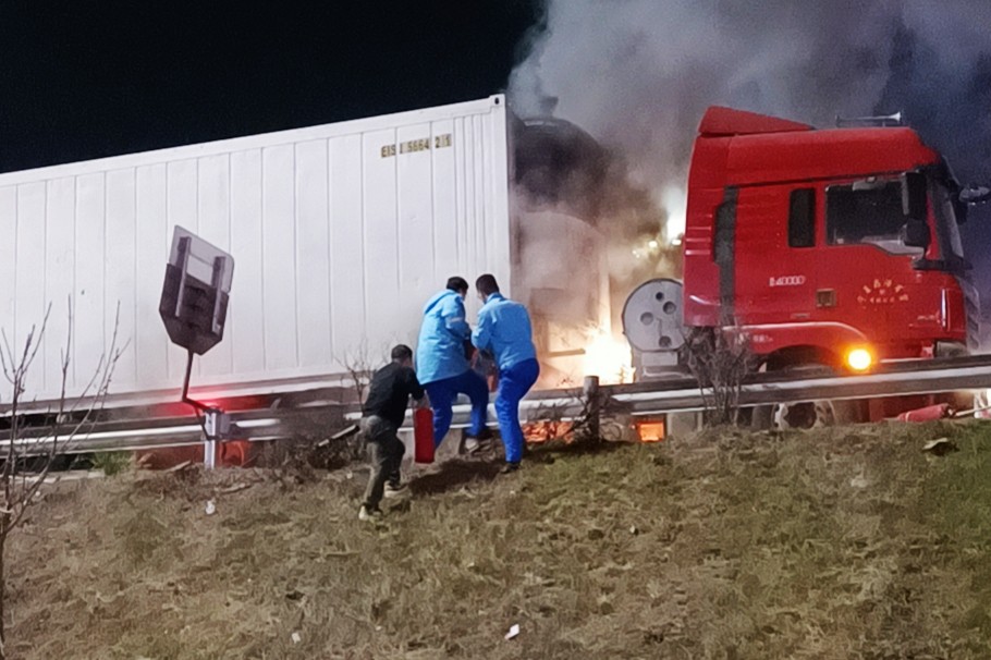 2024-03-27 作者:3月26日晚,一輛車牌號為遼H96T7掛的集裝箱貨車行駛途中發(fā)生自燃,緊急停靠在洛陽服務區(qū)南半幅高速公路主線應急車道,并向加油站當班人員尋求幫助。因停放地點距離加油站較近,火勢較大有蔓延趨勢,加油站立刻啟動應急預案,撥打119火警電話,組織工作人員跑步趕赴現(xiàn)場滅火。在…