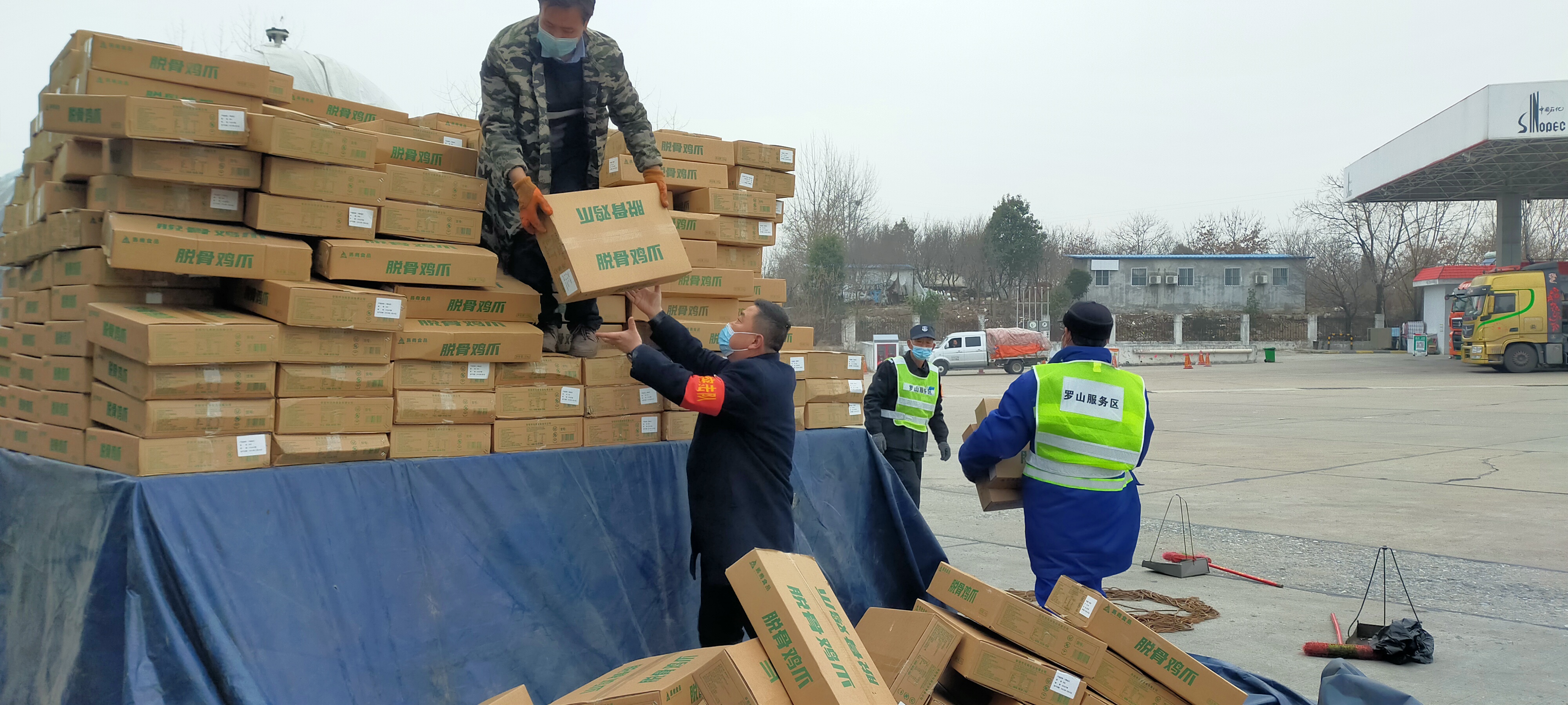 1月14日,一輛寧E牌照的貨車行駛至羅山服務(wù)區(qū)廣場(chǎng),裝載貨物發(fā)生大幅傾斜,只能將車上的貨卸下來重新裝車,駕駛員面對(duì)滿車貨物一籌莫展。得知情況后,服務(wù)區(qū)積極組織物業(yè)人員幫助駕駛員卸貨完畢又重新裝貨,經(jīng)過一個(gè)多小時(shí)的共同努力,終于將貨物擺正重新規(guī)整好。