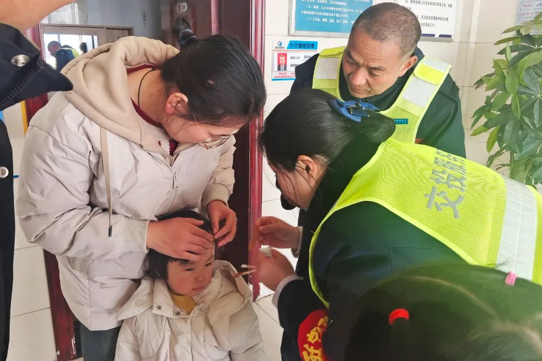 2月11日,項城服務區(qū)工作人員為頭部受傷小朋友涂抹碘伏 用創(chuàng)可貼包扎傷口